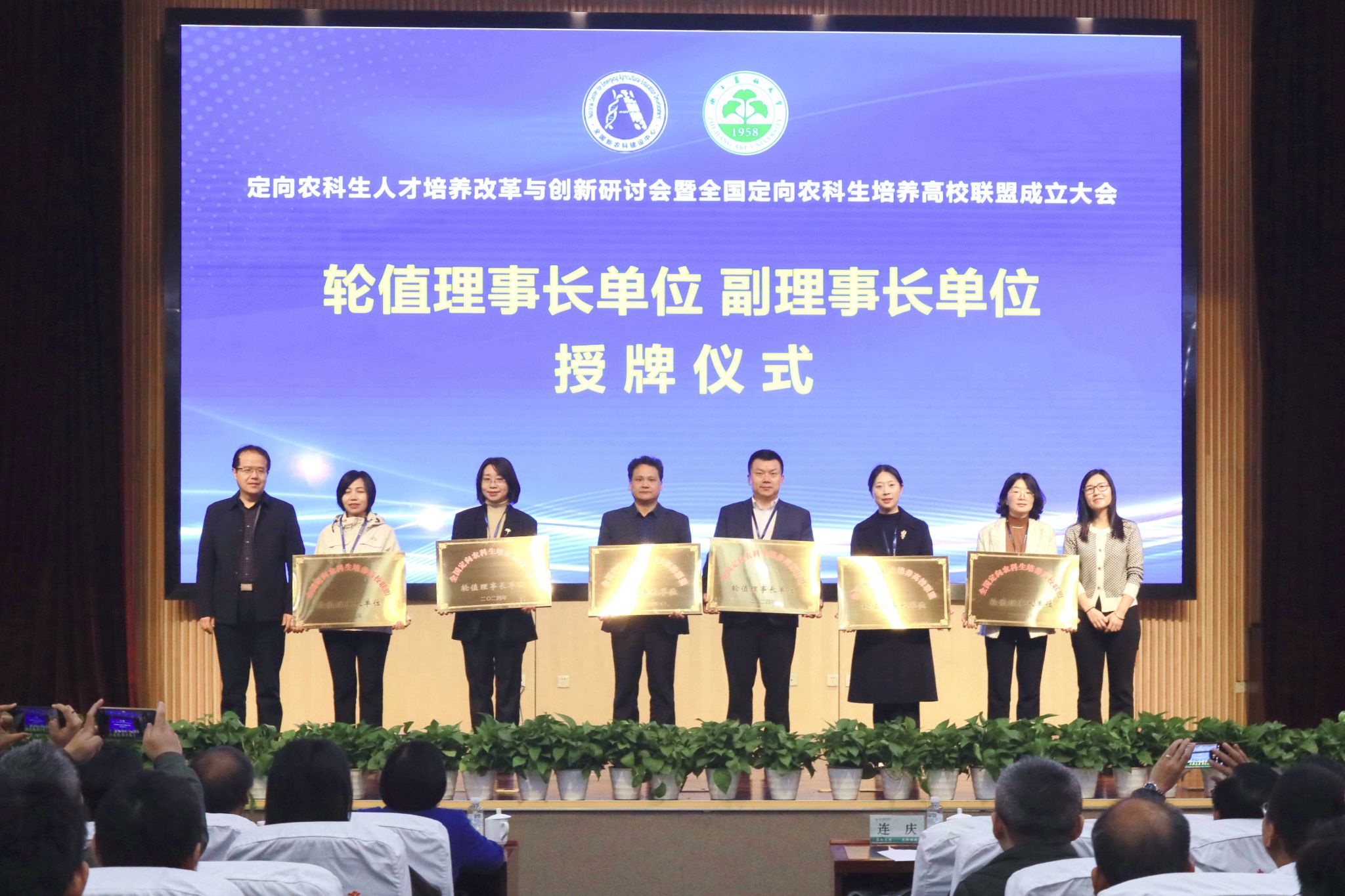 會上,由我校牽頭,聯合山西農業大學、吉林農業大學、安徽農業大學、湖南農業大學、山東農業大學等開展定向農科生人才培養項目的高校,共同發起成立了全國定向農科生培養高校聯盟,并通過了《全國定向農科生培養高校聯盟章程》。發起高校的校領導當選為第一屆聯盟理事會輪值理事長、副理事長,發起高校教務處負責人當選為第一屆聯盟理事會常務理事。全國定向農科生培養高校聯盟秘書處設在我校。