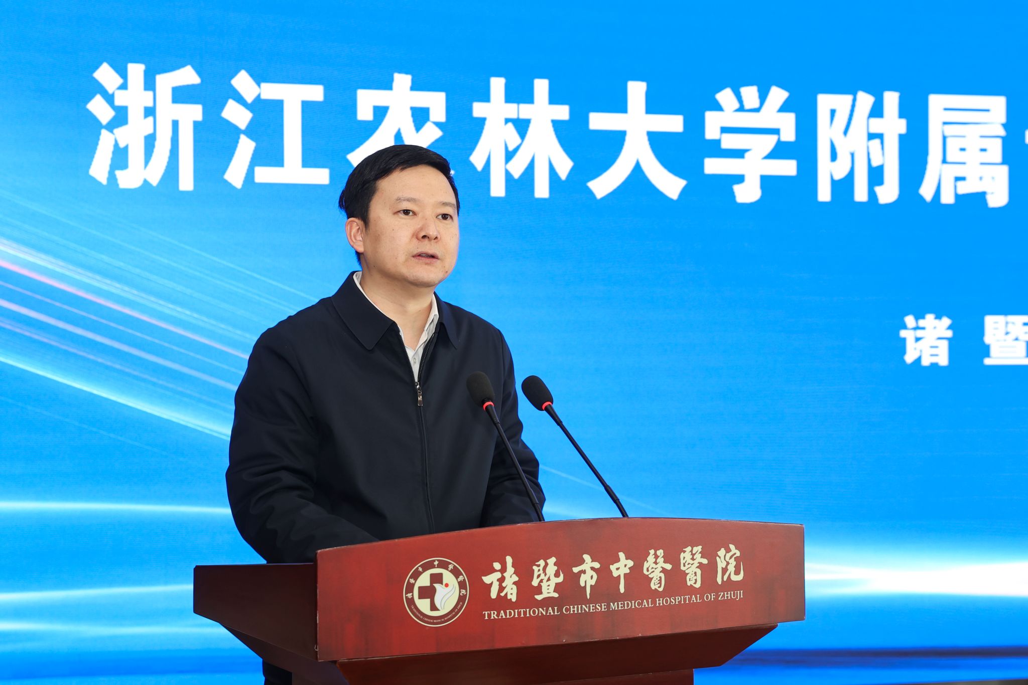 浙江農林大學附屬諸暨醫院(非直屬)是學校在生命健康領域的重要探索。我校校辦、組織部、科技處、生命醫學交叉研究中心等部門負責人,諸暨市府辦、衛健局等單位相關負責人,諸暨市中醫醫院全體班子成員、中層干部及分院院長等200余人參加儀式。