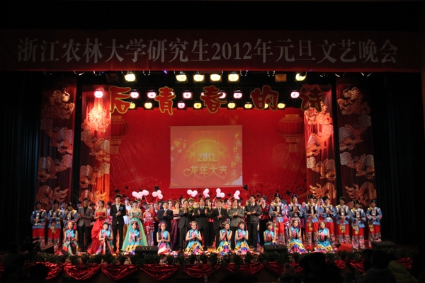 浙農林大新聞網訊 12月23日晚,研究生2012年元旦文藝晚會在活動中心影劇院舉行。此次晚會由我校研工部主辦,研究生團工委、研究生委員會承辦。校黨政領導班子成員周國模、方偉、宣裕方、張立欽、汪士華、陳永富親臨現場,與全體研究生共同觀賞了晚會。