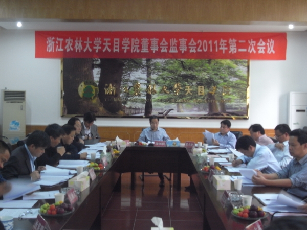 浙農林大新聞網訊 10月12日下午,天目學院在衣錦校區西大樓第一會議室召開2011年第二次董事會監事會會議,通報學院董事會監事會成員調整情況,研究學院財務管理體制和學士學位授權評建工作。會議由校長、天目學院董事長周國模教授主持。董事會和監事會成員出席了會議。