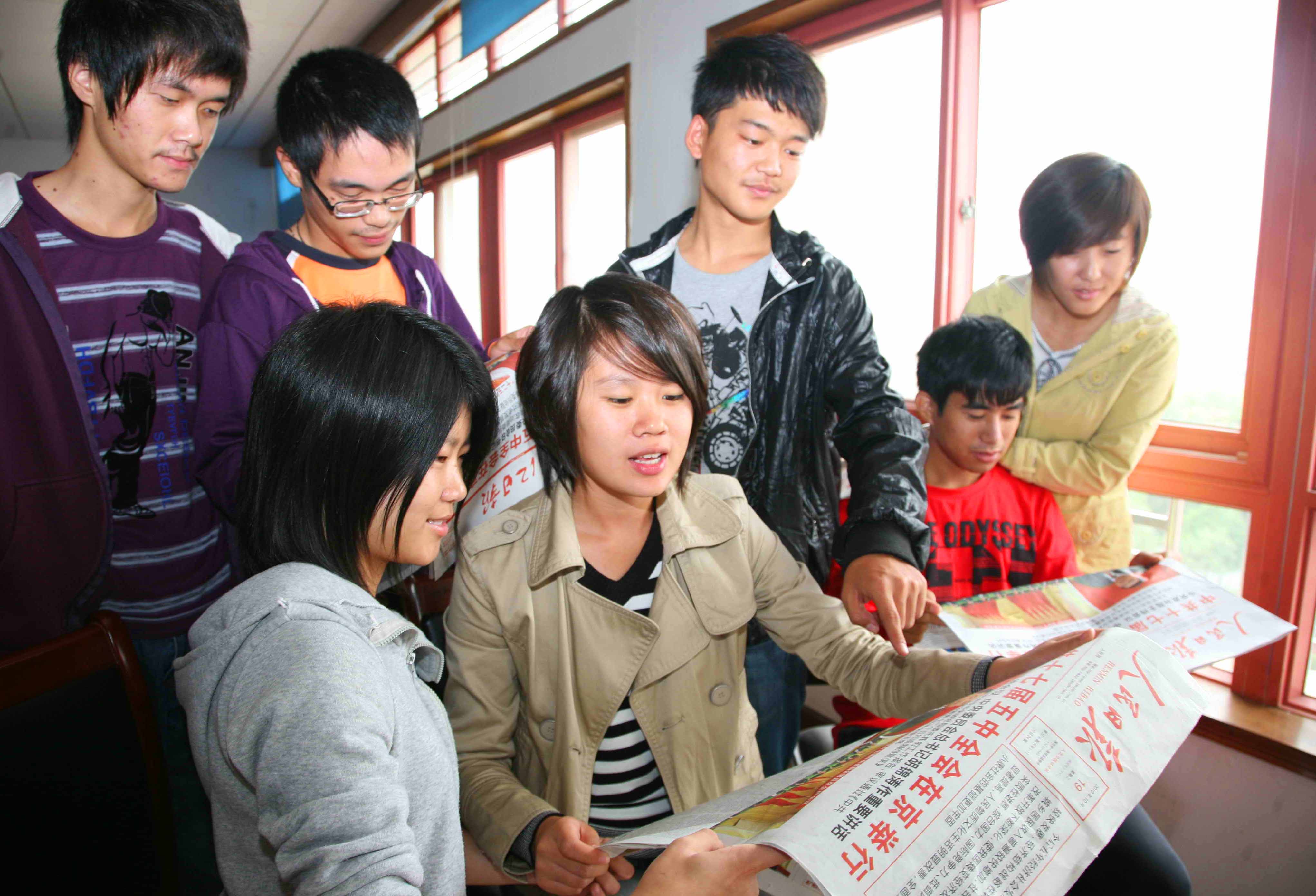 據(jù)了解,十七屆五中全會(huì)在京勝利閉幕后,我校師生紛紛組織各種形式的學(xué)習(xí)活動(dòng),他們收集有關(guān)報(bào)道文章進(jìn)行專題學(xué)習(xí),并通過座談會(huì)等形式進(jìn)行交流,領(lǐng)會(huì)有關(guān)精神。(天衣/攝)