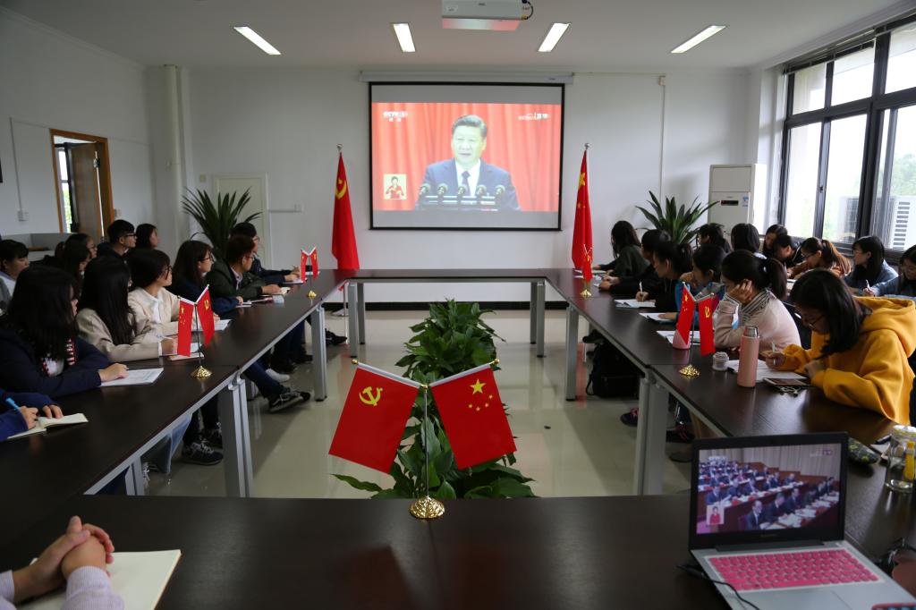 為更好地學習宣傳黨的十九大精神,學校此前專門發出《關于組織師生收聽收看黨的十九大會議盛況的通知》,要求各黨委(總支)、直支組織本單位師生員工收聽、收看黨的十九大開幕會盛況。校園里處處洋溢著慶祝十九大召開的喜慶氣氛,表達著浙農林人愛黨情懷和永遠跟黨走的堅定決心。