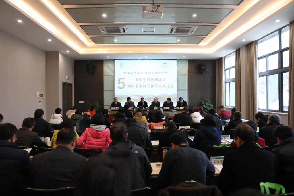 1月14日,非洲農林研究院五周年回顧活動暨中非農林合作學術研討會在衣錦校區學術交流中心舉行。校黨委書記周國模、副校長金佩華、農業部外經中心非洲處處長王先忠、商務部西亞非洲司一處處長朱奇等出席。