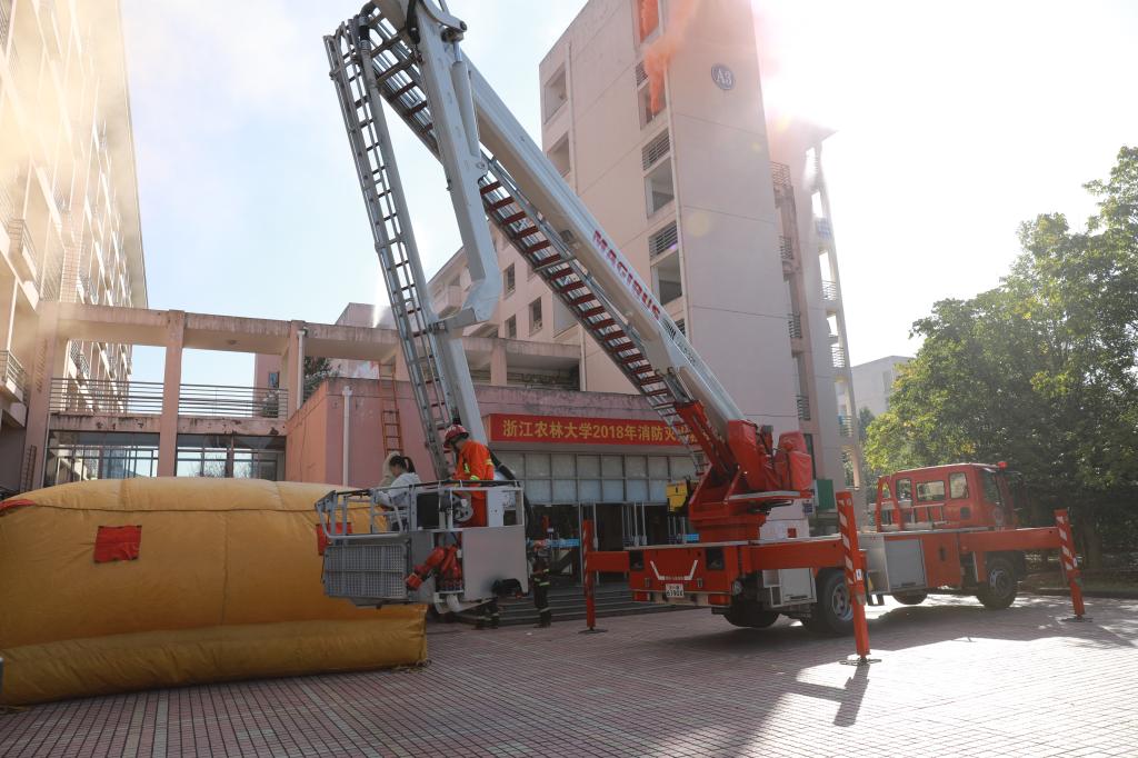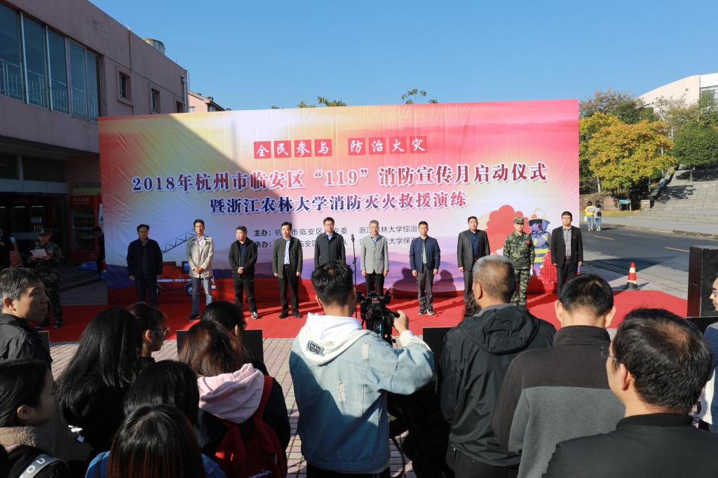 本次演練由校綜治委、臨安區(qū)消安委主辦。臨安區(qū)消防官兵、浙江農(nóng)林大學(xué)微型消防站成員、后勤宿管員、志愿消防隊(duì)員、各學(xué)院消防責(zé)任人及師生代表共計(jì)500余人參加了活動(dòng)。