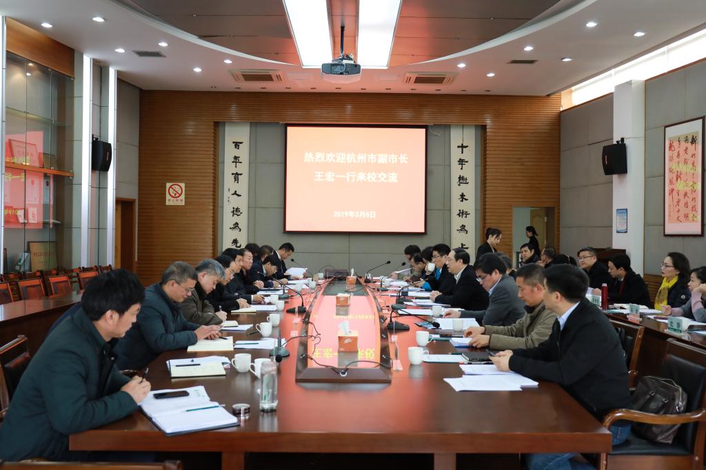 3月8日上午,杭州市副市長(zhǎng)王宏一行來校調(diào)研并舉行座談,校黨委書記周國模、校黨委原副書記方偉等陪同調(diào)研。王宏一行還實(shí)地考察了國家重點(diǎn)實(shí)驗(yàn)室等。
