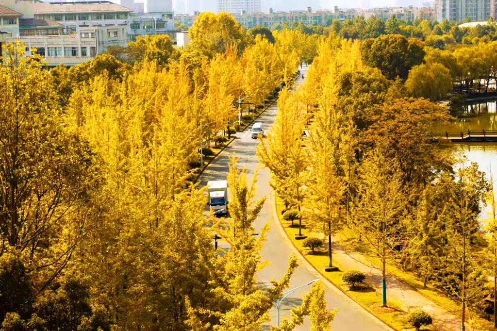 行走于東湖畔,金黃色的銀杏與火紅的池杉爭相斗艷。漫步于衣錦園,古楓迎著秋風,在向每一位農林學子講述著學校建設與發展的華麗篇章,奏響一曲秋天的主旋律。在美麗生態的秋日校園,聽農林學子吟誦于曉光熹微,掩卷沉思,心有篤志。