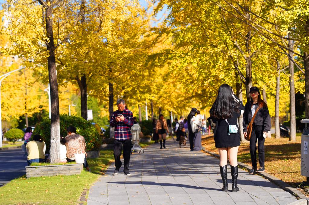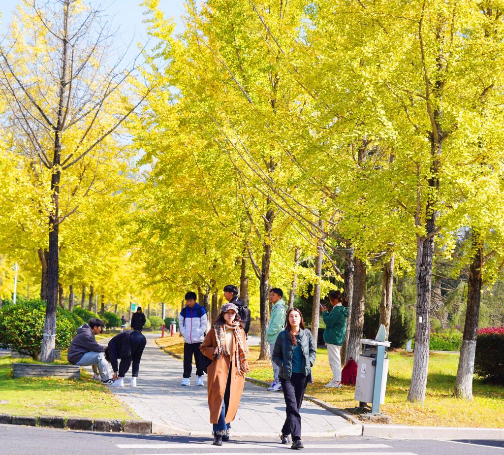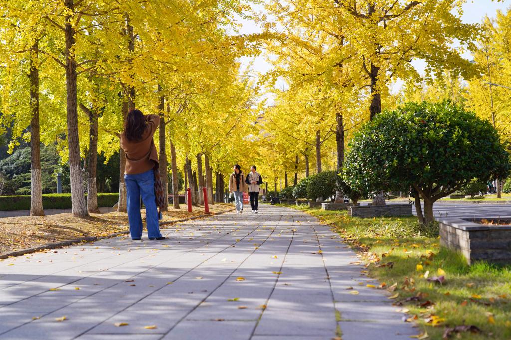 初冬時分,浙江農林大學校園里的銀杏大道,滿地鋪金、美不勝收,成為了欣賞秋色的網紅打卡點,吸引了很多市民來此拍照打卡,師生們更是不出校園就可以欣賞到絕“色”美景。