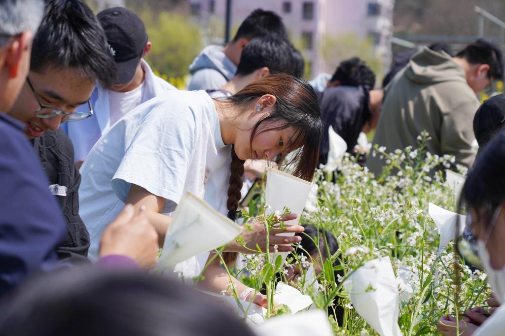 日前,浙江農(nóng)林大學(xué)校園農(nóng)作園里,學(xué)生們在田間地頭開展異花授粉等實(shí)驗(yàn)研究。據(jù)悉,浙江農(nóng)林大學(xué)是國家生態(tài)文明教育基地,擁有各類植物3300余種(含品種),連續(xù)多年蟬聯(lián)中國大學(xué)校園植物排行榜第一。豐富的植物種類,也讓整個校園成為該校學(xué)生農(nóng)學(xué)、園藝學(xué)、植物學(xué)等課程的實(shí)驗(yàn)室,學(xué)生們不出校園就可以開展專業(yè)的實(shí)習(xí)實(shí)踐。