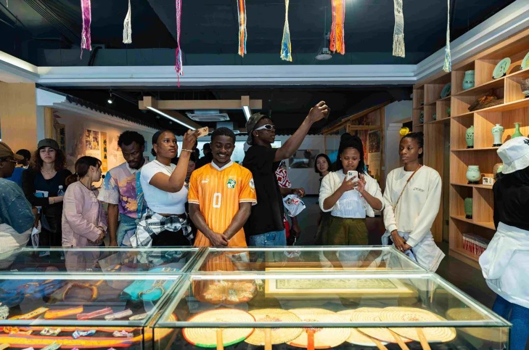 走進(jìn)非遺館,竹編畫、臉譜、刺繡、黑陶等非遺項(xiàng)目琳瑯滿目,留學(xué)生穿梭于各個(gè)非遺展示區(qū),近距離感受非遺作品的獨(dú)特魅力,并深深折服于非遺傳承人的精湛技藝。