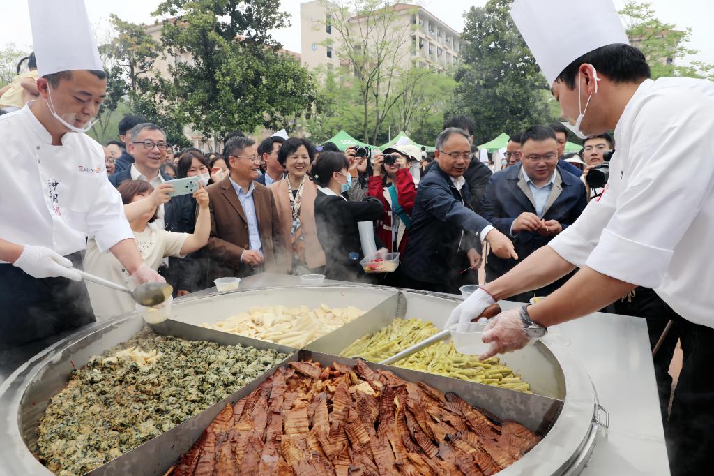 人間四月,春筍正鮮。4月13日,浙江農林大學第二屆農林“筍”宴系列活動正式拉開帷幕,數千名師生共品竹筍菜肴,感受竹子文化。