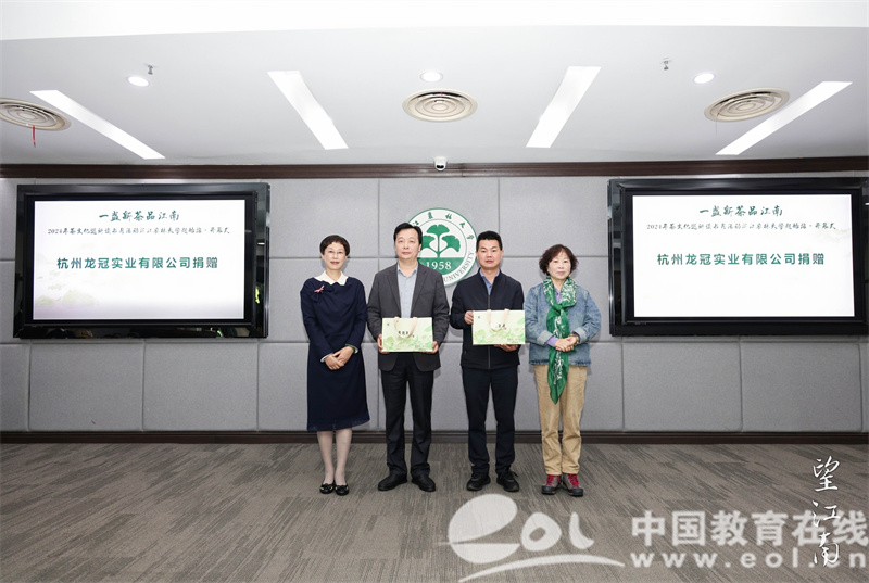 活動現場茶香四溢、氣氛熱烈。來自浙江農林大學茶文化專業的學生們,通過展示點茶技藝,為大家展現一幅柔美古典的宋韻畫卷?,F場首次亮相的龍井新茶與“望江南”書籍的組合——“龍井望江南”文創產品,讓人眼前一亮。浙江文藝出版社、龍冠茶葉有限公司、《江南》雜志社分別向浙江農林大學捐贈了茶文化系列圖書、“望江南”茶書禮盒等,不僅豐富了校園知識書庫,更進一步推動了“書香校園”文化建設。