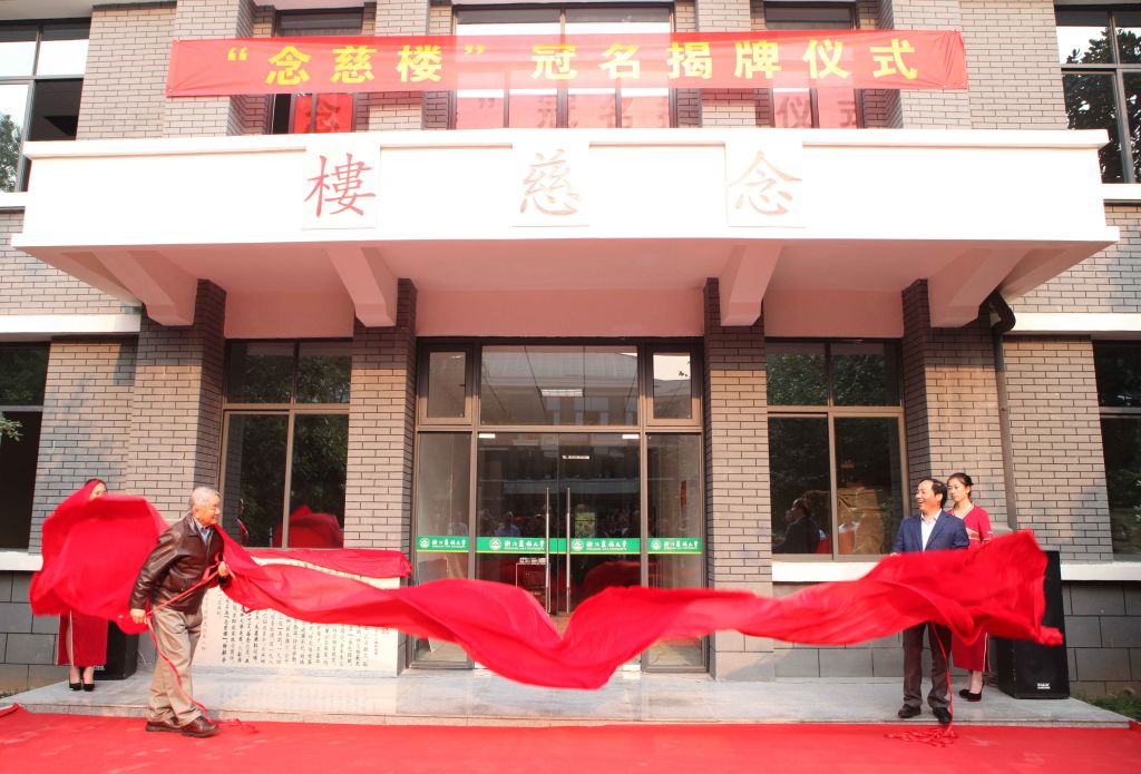 根據陳每文老先生的意愿,浙江農林大學將修繕后的東大樓冠名為“念慈樓”,并于當年10月16日舉行“念慈樓”揭牌儀式,陳每文先生親作《念慈樓記》銘刻于墻體。原來,陳每文先生2歲喪母,由其伯母王三妹在祖宅養大成人,“念慈樓”即表達其紀念慈母、不忘養母養育之恩。