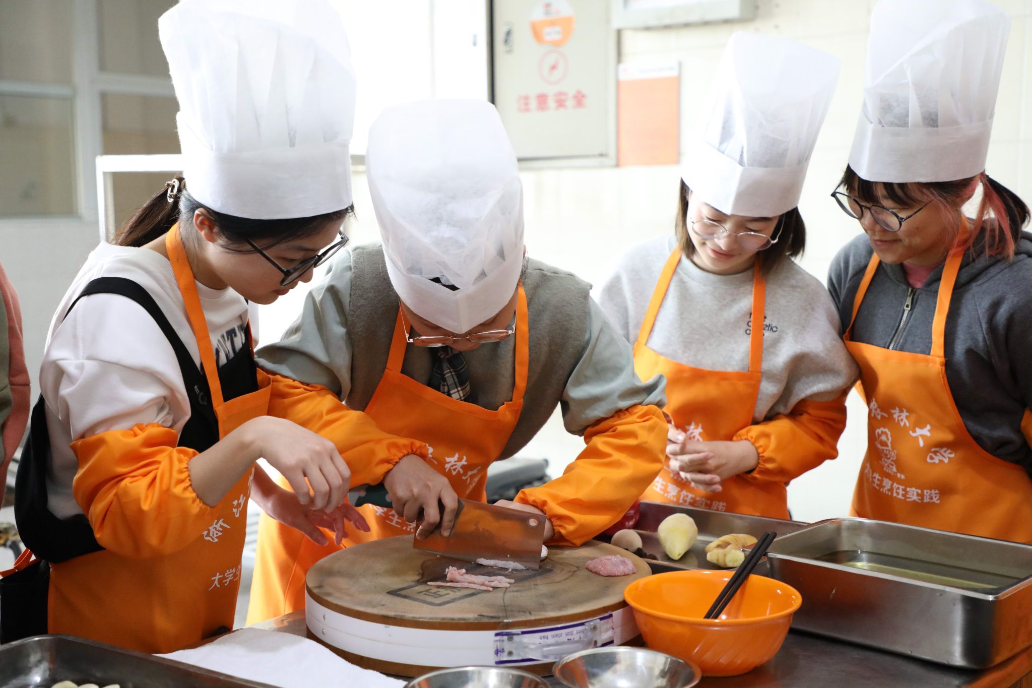 中國烹飪大師董銘華,浙江省學(xué)生公寓管理與服務(wù)工作先進個人楊帆、中式烹飪高級技師葉云龍、浙江省餐飲服務(wù)大師黃雙雙、森林病蟲害防控首席專家高級農(nóng)藝師仇智靈……為了確保把勞動實踐課程上好,浙江農(nóng)林大學(xué)后勤中心派出了骨干員工共同授課,讓廚師成講師、食堂成課堂。