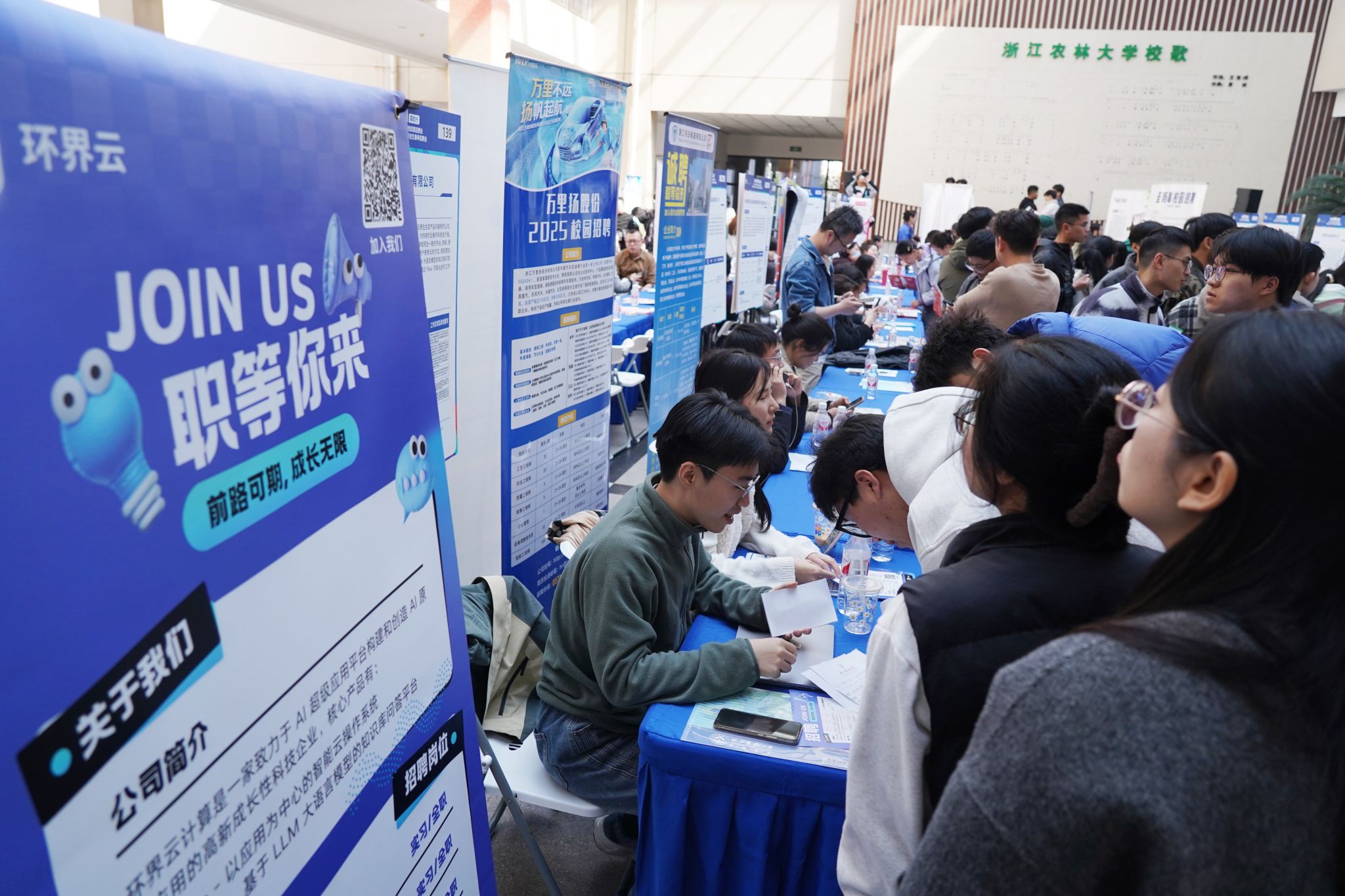 3月20日下午1點半,由浙江農林大學、杭州市人力資源和社會保障局共同舉辦的2025年在杭高校公益性校園招聘會暨浙江農林大學畢業生春季招聘會在浙江農林大學東湖校區活動中心舉行。