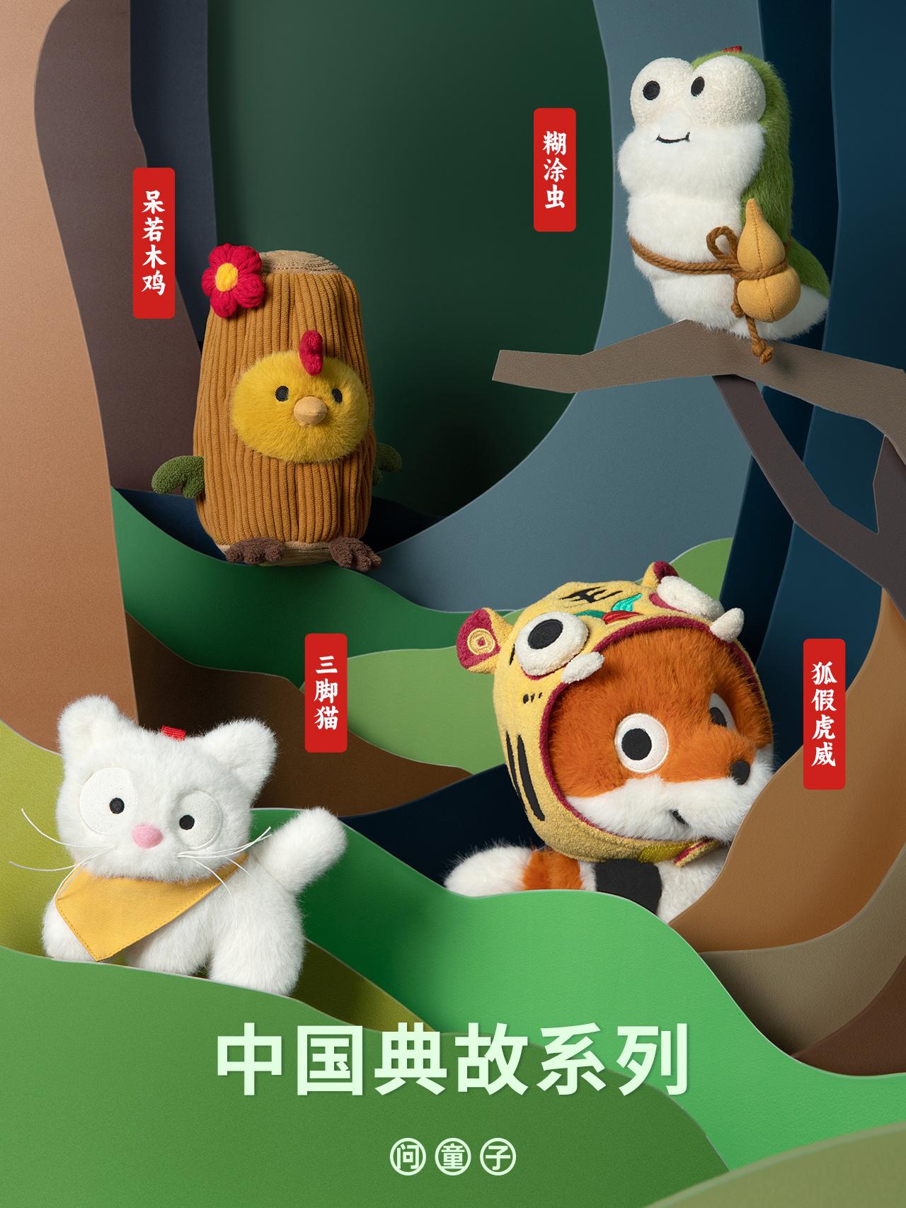 沈澤的創新不止于設計,更在于帶領團隊探索新型毛絨材料。例如,問童子采用杜邦紙和軟木材質拼接制作玩偶,賦予產品獨特的質感。
