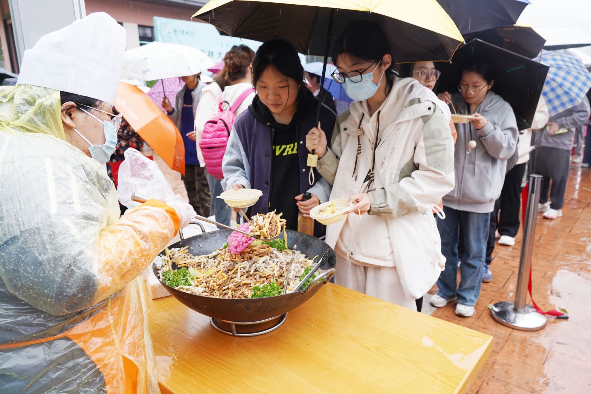 隨著鐵鍋的蓋子緩緩被掀起,濃郁的鮮香引得排隊的師生垂涎欲滴,千名師生人手一份,共同品嘗剛剛出鍋的6道竹筍菜肴。接著,數千名師生在這里參與剝筍比賽,學燒不同口味的筍菜,品嘗各種竹筍佳肴,體驗竹子領域的最新科技成果,欣賞竹材設計的工藝品,感受竹詩詞、竹音樂等竹文化。
