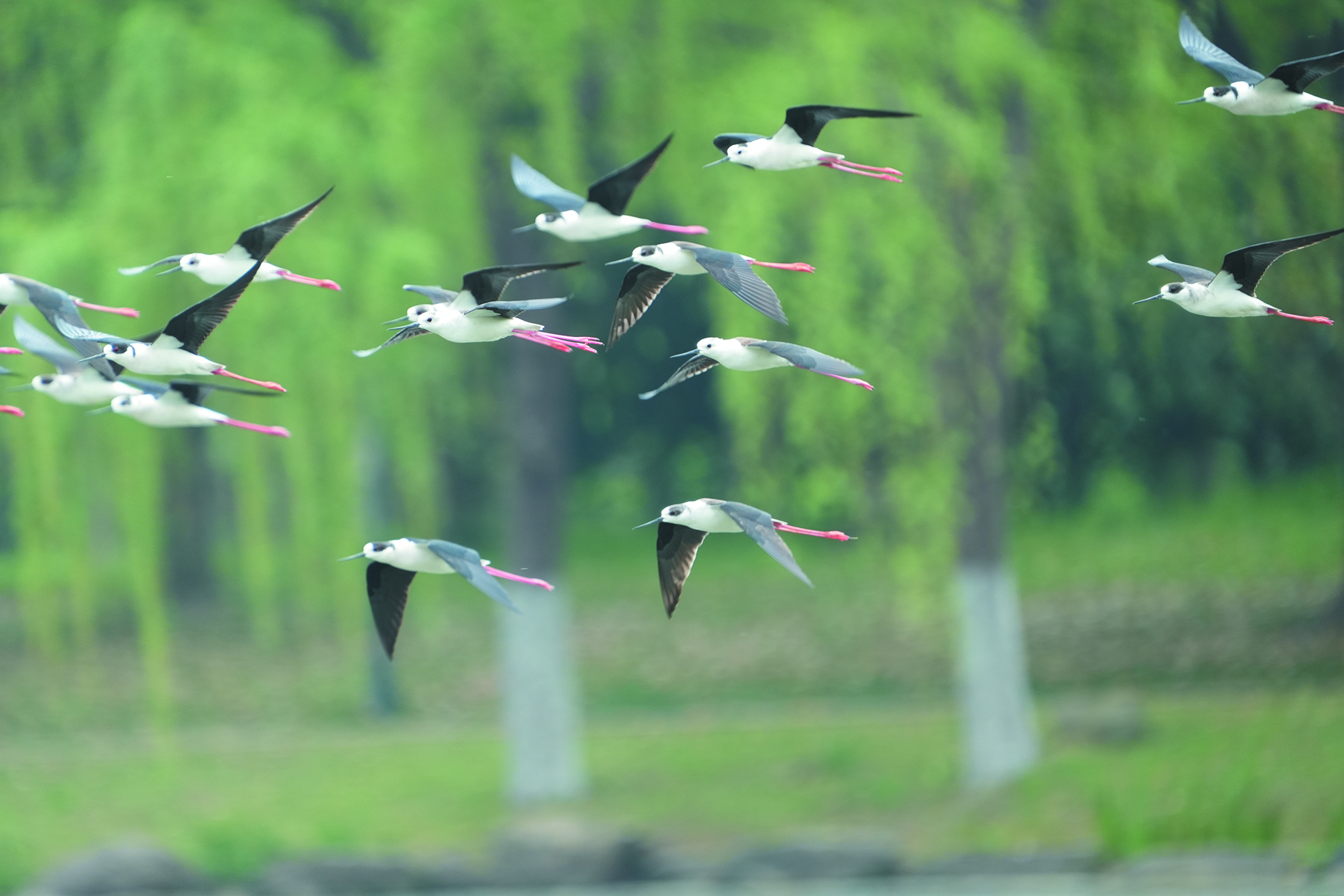 圖為浙江農(nóng)林大學葉喜陽老師抓拍的黑翅長腳鷸。