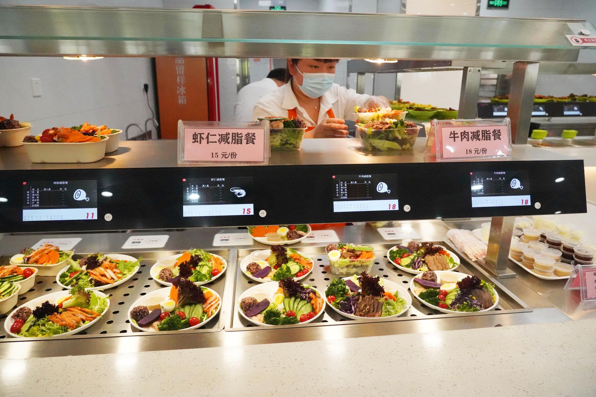 “我今天吃的是牛肉減脂餐,味道很不錯,成功俘獲了我的胃!我覺得減脂餐不僅提供了我所需的營養,又能避免過多的油脂和鹽分。特別期待食堂之后能夠繼續推出更多的減脂餐,讓我們有更多的選擇,我一定天天來蹲點?!痹撔n櫩弟巴瑢W笑著說。