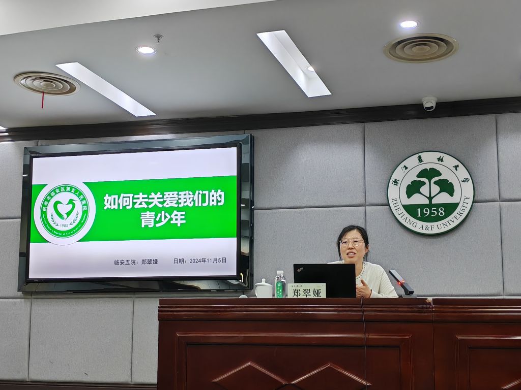11月5日下午,主題為《診斷與評估,如何與學生有效溝通》的心理講座在圖書館第二報告廳舉行,本次講座由臨安區第五人民醫院精神科醫生鄭翠婭主講,學工部部長周曉光擔任主持。學校全體學生副書記、輔導員、公寓輔導員等共計百余人參加本次講座。