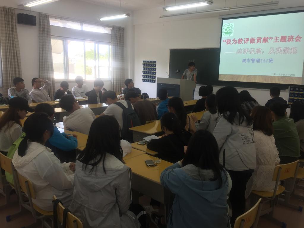 為進(jìn)一步深化學(xué)生對(duì)教學(xué)審核評(píng)估重要性的認(rèn)識(shí),以“主人翁”的姿態(tài)迎接學(xué)校本科教學(xué)審核評(píng)估,4月12-19日,馬克思主義學(xué)院、法政學(xué)院各班級(jí)先后開展“我為教評(píng)做貢獻(xiàn)”系列主題班會(huì),班主任、輔導(dǎo)員共同參與,并覆蓋到每位學(xué)生。