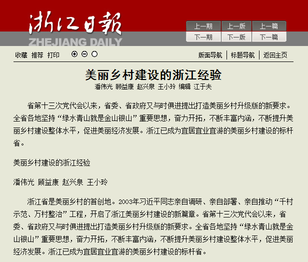 5月8日,《浙江日報》以大篇幅刊登我校中國農民發展研究中心理論文章《美麗鄉村建設的浙江經驗》。
