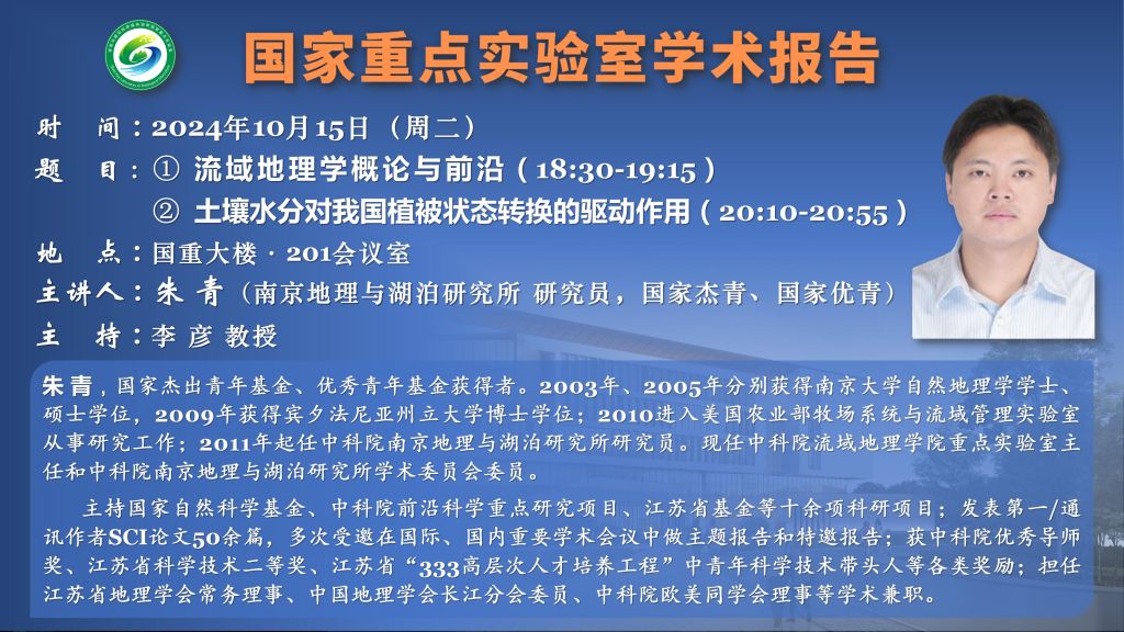講座預告:流域地理學概論與前沿&土壤水分對我國植被狀態轉換的驅動作用