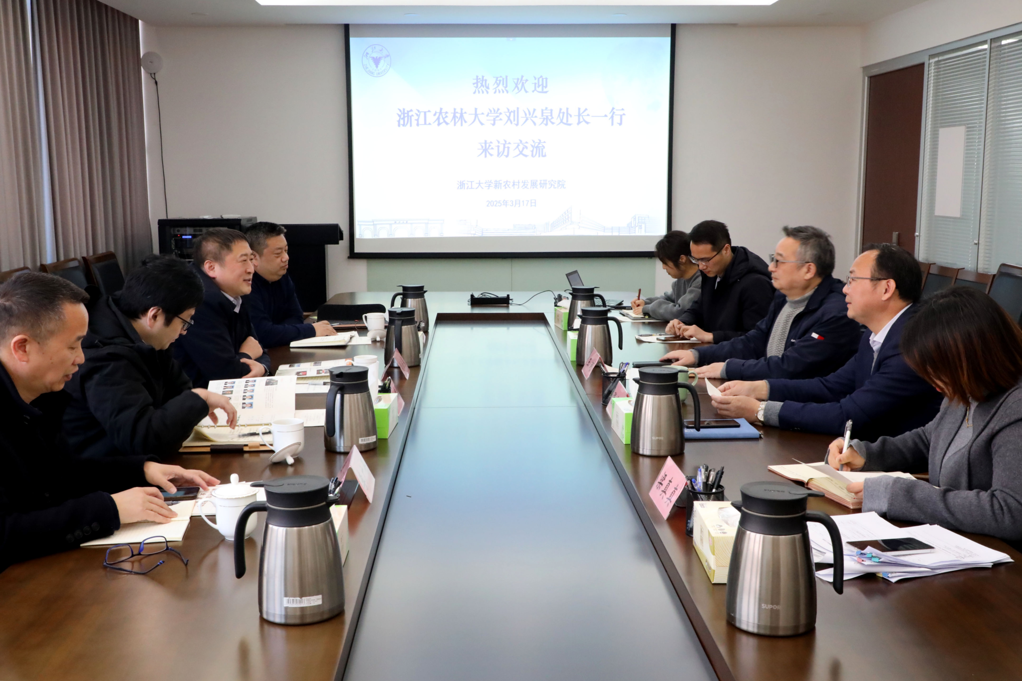 3月17日上午,合作處、振興處劉興泉處長一行赴浙江大學新農村發展研究院調研社會服務工作。新農村發展研究院黨政班子成員王珂、張士良等熱情接待并參加座談交流。
